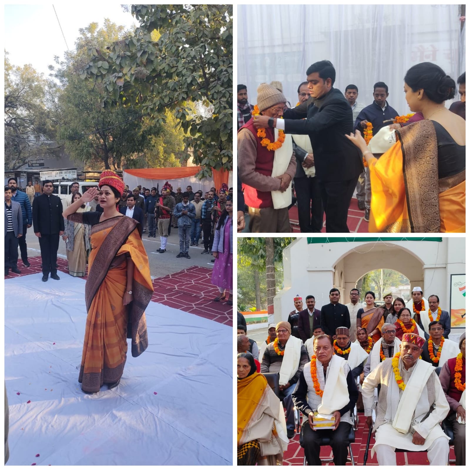 रायबरेली। 76वें गणतंत्र दिवस के अवसर पर जिलाधिकारी हर्षिता माथुर ने कलेक्ट्रेट स्थित परिसर में झंडा फहराया। राष्ट्रगान के उपरांत जिलाधिकारी ने उपस्थित लोगों को संविधान की प्रस्तावना की शपथ दिलाई। जिलाधिकारी ने भारत माता के चित्र पर पुष्प चढ़ा कर शहीदों को याद किया। इसके उपरांत जिलाधिकारी ने स्वतंत्रता सेनानियों के आश्रितों को अंग वस्त्र और माला पहनाकर सम्मानित किया। इसके पश्चात व्यापार संघ के पदाधिकारियों द्वारा अधिकारीगणों को सम्मानित किया गया।