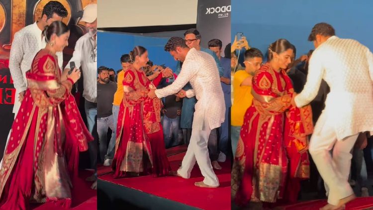 तेलुगु फिल्मों में अपना चार्म दिखाने के बाद अब रश्मिका मंदाना बॉलीवुड में भी छा गई हैं। रणबीर कपूर की ‘एनिमल’ के बाद एक्ट्रेस फिल्म ‘छावा’ में अब विक्की कौशल के साथ नजर आने वाली हैं। ये फिल्म शिवाजी महाराज पर आधारित है। बीते दिन फिल्म का ट्रेलर जारी किया गया जो लोगों को काफी पसंद आ रहा है। रश्मिका ट्रेलर लॉन्च में शामिल होने के लिए हैदराबाद से व्हीलचेयर पर मुंबई आईं। इवेंट में लंगड़ाते और उछलते हुए उनका वीडियो भी सोशल मीडिया पर वायरल हो रहा है। इस दौरान उनके को-एक्टर विक्की कौशल उनका सहारा बने। अब वीडियो देखने के बाद लोग जानना चाह रहे हैं कि एक्ट्रेस को आखिर हुआ क्या था जो वो इस तरह उछलकी-कूदती नजर आईं। वहीं दूसरी ओर लोग विक्की कौशल की तारीफें करते नहीं थक रहे हैं।