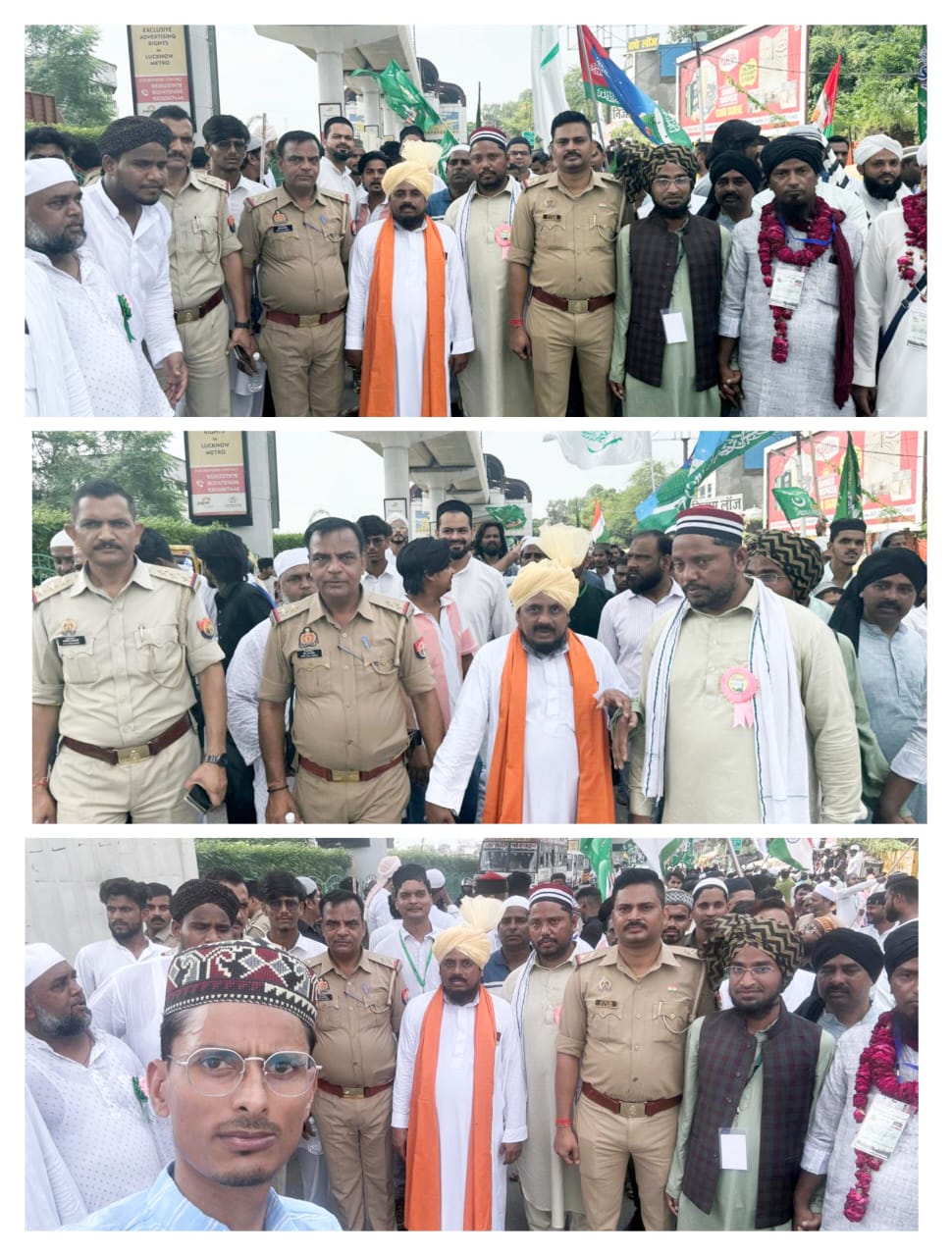सरोजनीनगर, लखनऊ । राजधानी लखनऊ के सरोजनी नगर क्षेत्र के आजाद नगर की नूरी जामा मस्जिद से ईद मिलादुन्नबी का जुलूस बड़ी ही धूम धाम से निकाला गया। यह जुलूस आजाद नगर की नूरी जामा मस्जिद से होते हुए आजाद नगर क्षेत्र के बकरीद के घर की तरफ से होते हुए कानपुर रोड अमौसी मेट्रो स्टेशन होते हुए ट्रांसपोर्ट नगर मेट्रो स्टेशन से 32 बटालियन पीएसी ट्रांसपोर्ट नगर वाली मस्जिद में जाकर संपन्न हुआ।