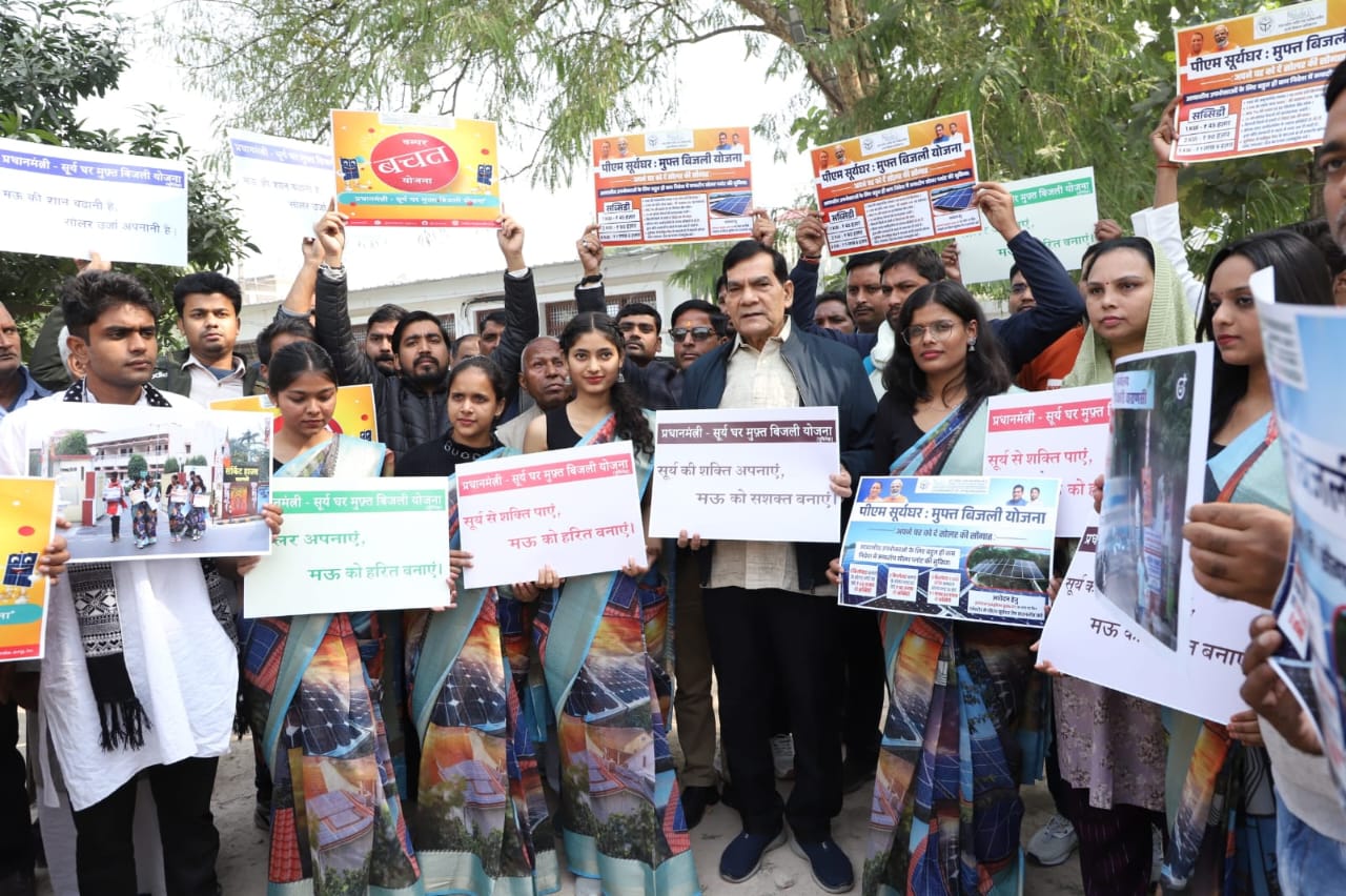 लखनऊ। उत्तर प्रदेश के नगर विकास एवं ऊर्जा मंत्री ए0के0 शर्मा ने मंगलवार को मऊ जनपद में पीएम सूर्यघर मुफ्त बिजली योजना के तहत सौर ऊर्जा को बढ़ावा देने और आमजन को जागरूक करने के उद्देश्य से आयोजित एक विशेष कार्यक्रम में बतौर मुख्य अतिथि प्रतिभाग किया। उन्होंने कार्यक्रम में उपस्थित जनसमुदाय को इस योजना के महत्व और लाभों के बारे में जानकारी दी। उत्तर प्रदेश में इस योजना का प्रभावी क्रियान्वयन राज्य को स्वच्छ और हरित ऊर्जा की दिशा में अग्रसर करेगा।