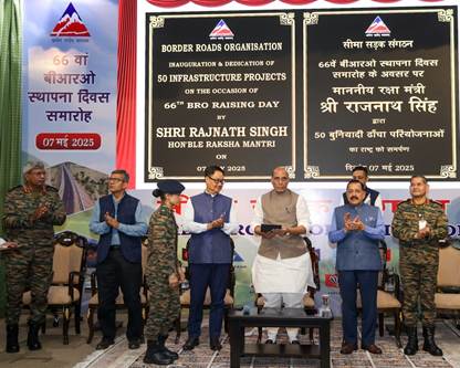 आयोजन में रक्षा मंत्री ने आभासी माध्यम से सीमा सड़क संगठन की 50 रणनीतिक रूप से महत्वपूर्ण बुनियादी ढांचे परियोजनाएं राष्ट्र को समर्पित कीं। इनमें 30 पुल, 17 सड़कें और तीन अन्य अवसंरचना कार्य शामिल हैं। कुल 1,879 करोड़ रुपये की लागत से निर्मित ये परियोजनाएं छह सीमावर्ती राज्यों और दो केंद्र शासित प्रदेशों – जम्मू-कश्मीर, लद्दाख, अरुणाचल प्रदेश, हिमाचल प्रदेश, सिक्किम, मिज़ोरम, पश्चिम बंगाल और राजस्थान में व्याप्त हैं और दूरदराज के क्षेत्रों में देश की सुरक्षा, संपर्क और विकास को पोषित करती हैं। सीमा सड़क संगठन ने पिछले दो वर्षों में 5,600 करोड़ रुपये के परिव्यय से 161 बुनियादी ढांचे परियोजनाओं को पूरा किया है, जो एक रिकॉर्ड है। इनमें पिछले वर्ष की 111 परियोजनाएं शामिल हैं। पिछले चार वर्षों में संगठन ने 13,743 करोड़ रुपये की कुल लागत से 456 बुनियादी ढांचा परियोजनाओं को पूरा किया है।
