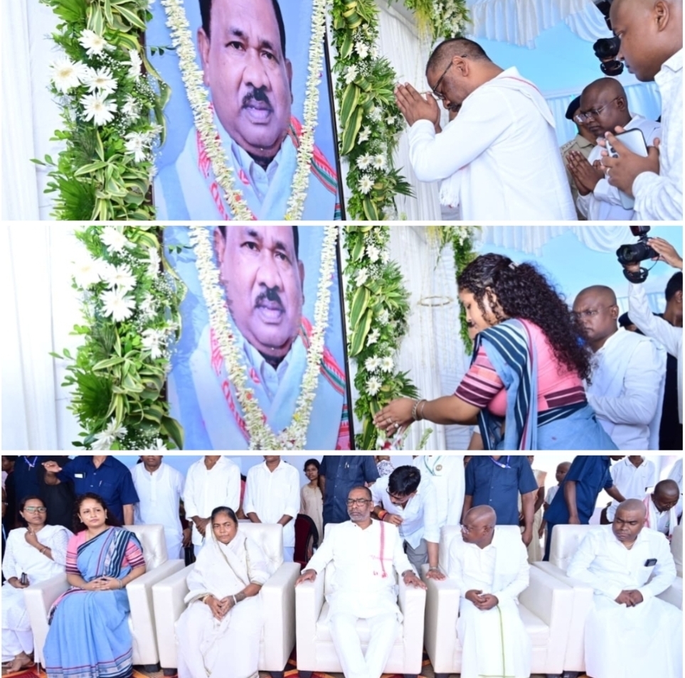 जमशेदपुर (झारखंड)। मुख्यमंत्री श्री हेमन्त सोरेन अपनी धर्मपत्नी एवं विधायक श्रीमती कल्पना सोरेन संग आज स्कूली शिक्षा एवं साक्षरता मंत्री रहे स्मृति शेष-स्व० रामदास सोरेन जी के “संस्कार भोज” में सम्मिलित होने घोड़ाबांधा, जमशेदपुर स्थित उनके आवास पर पहुंचे। यहां उन्होंने दिवंगत मंत्री स्व० रामदास सोरेन जी की तस्वीर पर पुष्प अर्पित कर उन्हें भावपूर्ण श्रद्धांजलि दी।