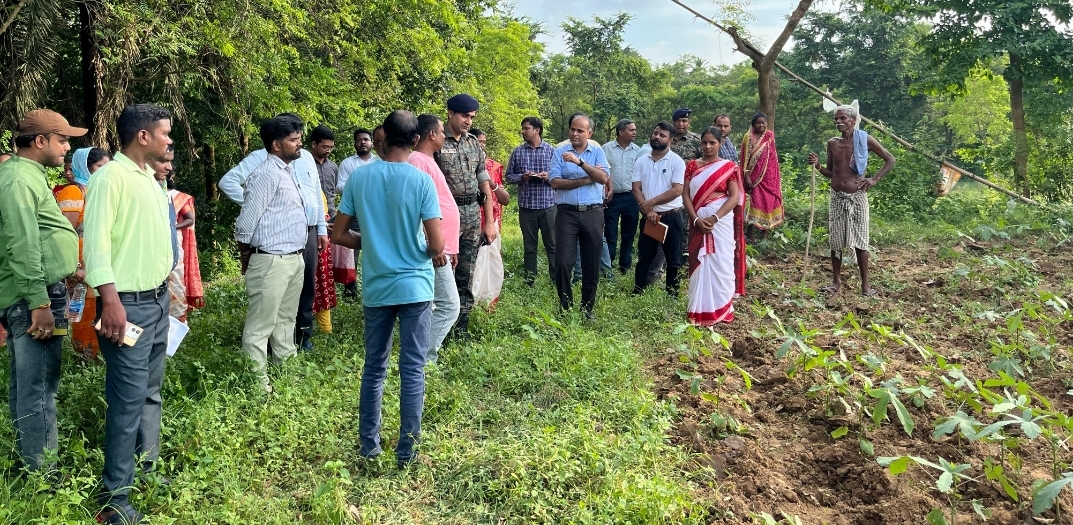 जमशेदपुर (झारखंड)। उपायुक्त श्री कर्ण सत्यार्थी ने क्षेत्र भ्रमण के क्रम में मुसाबनी प्रखंड अंतर्गत गोहला पंचायत के देवली गांव में संचालित वेजिटेबल फार्मिंग कलस्टर का निरीक्षण किया। यह फार्मिंग कलस्टर जेएसएलपीएस के सहयोग से संचालित है, जिसके माध्यम से स्थानीय किसान सब्ज़ी उत्पादन, दलहन खेती तथा पशुपालन को अपनाकर अपनी आय में वृद्धि कर रहे हैं।