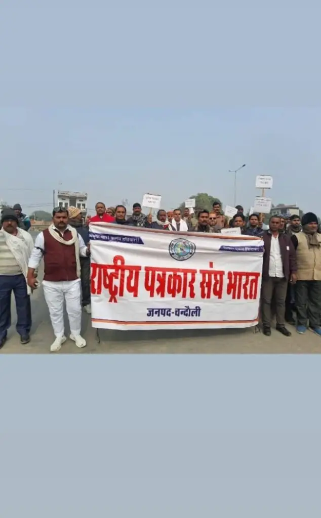 चंदौली। विगत दिनों भ्रष्टाचार के खिलाफ खबर प्रकाशित करने पर छत्तीसगढ़ के युवा पत्रकार मुकेश चंद्राकार की ठेकेदार द्वारा हत्या कर दी गई थी। पत्रकार की हत्या से पत्रकारों में आक्रोश व्याप्त है। सोमवार को आक्रोशित पत्रकारों ने राष्ट्रीय पत्रकार संघ भारत के जिलाध्यक्ष सुनील सिंह के नेतृत्व में मुख्यालय स्थित पं. कमलापति त्रिपाठी चिकित्सालय से मौन जुलूस निकालकर नगर भ्रमण करते हुए डीएम कार्यालय पहुंचे।