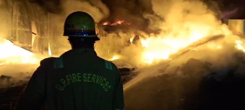 सरोजनीनगर, लखनऊ। राजधानी लखनऊ के सरोजनीनगर थाना क्षेत्र के नादरगंज स्थित महेश नमकीन फैक्ट्री में सोमवार सुबह तड़के करीब 5 बजे भयानक आग लग गई। फैक्ट्री के स्क्रेप गोदाम स्थित लगी आग ने तुरंत ही विकराल रूप धारण कर लिया। बताते हैं कि गोदाम में लकड़ी व पॉलिथीन होने के कारण आग ने विकराल रूप धारण किया। फिलहाल किसी के हताहत होने की कोई खबर नहीं है।