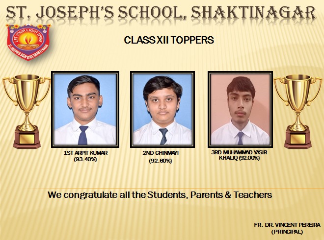 तो चिन्मयी ने 92.6% अंक प्राप्त करके द्वितीय स्थान पर कब्जा किया, वहीं मो0 यासिर खालिक ने 92% के साथ तृतीय स्थान हासिल किया। विद्यालय के प्रधानाचार्य फादर डॉ0 विंसेंट परेरा ने सभी उत्तीर्ण छात्रों, अभिभावकों तथा शिक्षकों को बधाई देते हुए