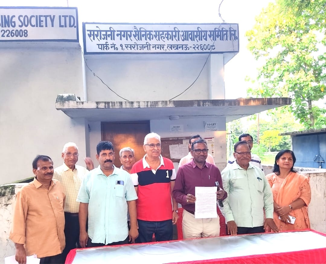 सरोजनीनगर, लखनऊ। राजधानी लखनऊ के सरोजनीनगर क्षेत्र के अंतर्गत सरोजनीनगर सोसाइटी कार्यालय पर दिन रविवार को सरोजनीनगर सैनिक सोसायटी संघर्ष मोर्चा मंत्री आलोक कुमार सिंह वा अध्यक्ष मदन किशोर गौतम की उपस्थिति में वरिष्ठ उपाध्यक्ष गुलशन लाल मल्होत्रा, उपाध्यक्ष विजय शर्मा, राजेंद्र कुमार सिंह सदस्य सरबजीत सिंह, नूतन सिंह, एल.बी.यादव, चंदर भसीन सहित राजेंद्र लोधी पूर्व पार्षद ने पहले से बनी सोसाइटी के पदाधिकारीयों पर आरोप लगाया कि सरोजनीनगर सैनिक कोऑपरेटिव हाउसिंग सोसाइटी लिमिटेड लखनऊ में नियम विरुद्ध एवं गुपचुप तरीके से निर्वाचन अधिकारी अभिषेक द्विवेदी द्वारा समिति के सचिव शिव शरण शर्मा की मिली भगत से 12 सितंबर 2024 से प्रारंभ की गई।