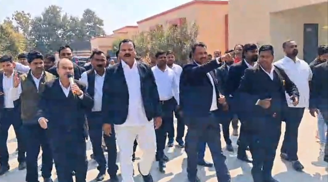 बार काउंसिल आफ उत्तर प्रदेश के आवाहन पर सरोजनीनगर बार एसोसिएशन ने किया जोरदार धरना प्रदर्शन
