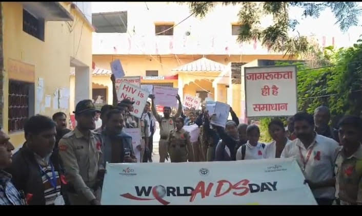 जिसमें मुख्य चिकित्सा अधिकारी सी एल वर्मा एवं जिला अधिकारी डॉ अनिल ओझा द्वारा एड्स दिवस पर हरी झंडी दिखाकर रैली को रवाना किया। जो केवी कॉलेज से निकालकर पक्के घाट पहुंचकर समाप्त किया गया।